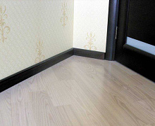 МДФ плинтус от компании "Лука". Перекроет зазор между стеной и полом до 16 мм.